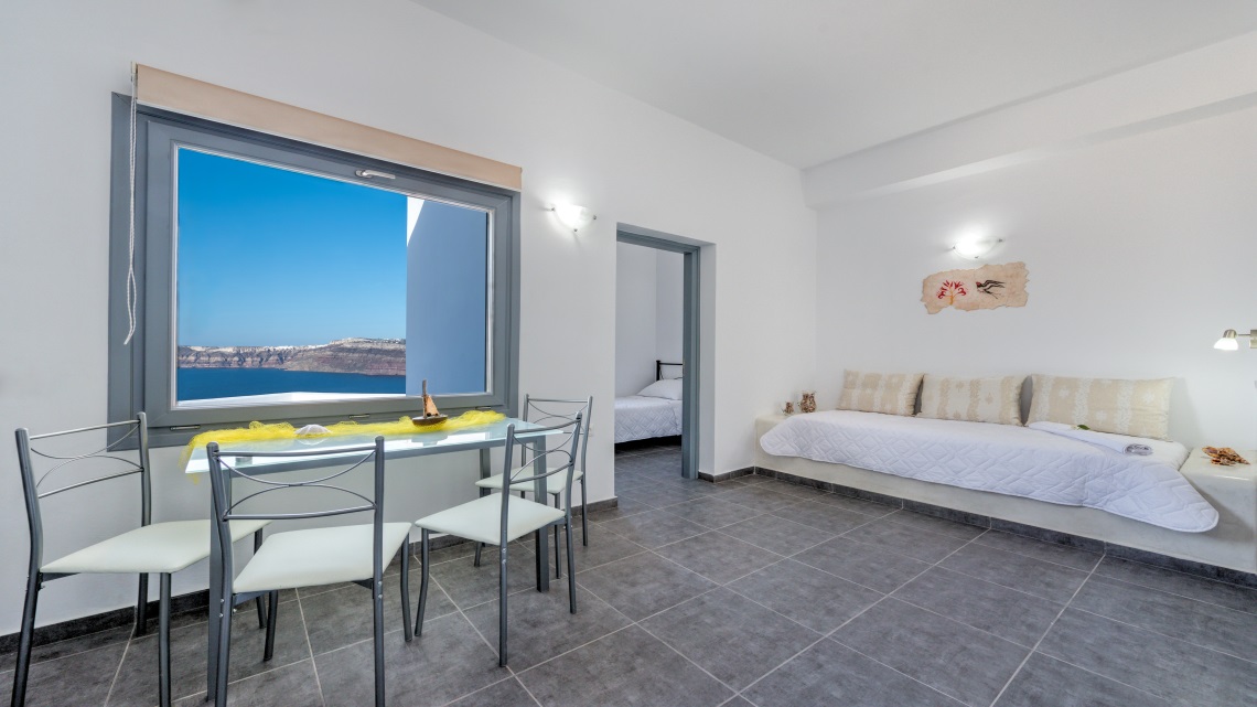 Pancratium Villas & Suites by itself is a quiet family owned hotel in Akrotiri, Santorini. Our newly built suites offer comfort and luxurious accommodation, always with respect to traditional Cycladic architecture. The panoramic view of caldera and the rest of the island from the rooms will take your breathe away.