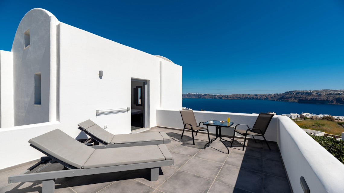 Experience absolute tranquility at Pancratium Villas overlooking the greathtaking Santorini Caldera